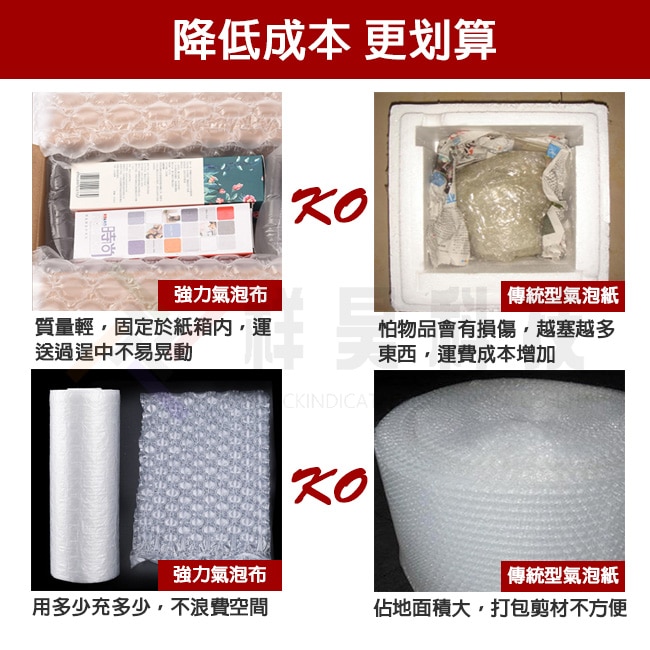 The bubble of the strong bubble cloth is larger and lighter in weight. It does not need to be stuffed too much in the carton, so that the goods can be stable in the carton and not easy to shake, and the logistics freight will be relatively reduced.