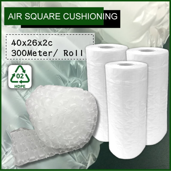 AIR PILLOW CUSHIONING Features Easy and flexible void filling solution Dust free and lightweight Improving the Packing Operation Cost Efficiency and Simplicity Clean, clear packaging material – immaculate professional look Load bearing :static bearing 60kg(132lb) Film is 100% recyclable SpecificationDownload BrochureInquiry Product Specification Size AIR SQUARE CUSHIONING (Green or White) Material HD-PE (High-density polyethylene) Size 40×26*2c (Per Piece) Length 300 Meter/ Roll Weight 5 kg sq 754.29 KB 下載 Your Name Gender Mr Miss Your Company Your Phone Your…
