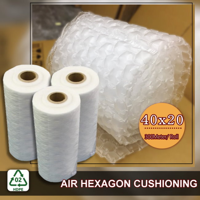 AIR HEXAGON CUSHIONING Features Easy and flexible void filling solution Dust free and lightweight Improving the Packing Operation Cost Efficiency and Simplicity Clean, clear packaging material – immaculate professional look Load bearing :static bearing 60kg(132lb) Film is 100% recyclable SpecificationDownload BrochureInquiry Product Specification Size AIR HEXAGON CUSHIONING (Green or White) Material HD-PE (High-density polyethylene) Size 40×20*2c (Per Piece) Length 300 Meter/ Roll Weight 4 kg he 754.39 KB 下載 Your Name Gender Mr Miss Your Company Your Phone Your…